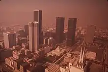 Par les années 1940, il y avait plus de 1 million de voitures à la ville et les smogs devenaient de plus en plus sévères. La croissance d'industrie et de population qui se passait pendant la Seconde Guerre Mondiale aussi causa une forte augmentation de la pollution[7]. Une vague de smog en juillet 1943 était si sévère qu'elle fit croire aux habitants que les japonais auraient attaqué la ville avec des armes chimiques[8]. Pendant les années 1960, la ville s'enregistrait une moyenne de 200 de jours de smog chacune année[8]. Mais le lien entre les voitures et le smog n'était pas compris jusqu'aux années 1950[9].