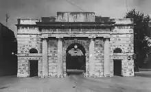 Après l'inauguration le 1er juin 1919 du « Sanatorio Belfiore », dans la localité de Pompilio, dans les années 1920, le nouvel Hôpital Civique de Mantoue est construit et inauguré le 28 octobre 1928, qui prend en 1938 le nom d'« Istituti Ospedalieri di Mantova » («Instituts hospitaliers de Mantoue»), à la suite de la fusion de l'hôpital civil préexistant, de l'hôpital pour enfants Bulgarini et du Pio Istituto Rachitici ed Ortopedico[19]. La démolition des vieux bâtiments continue à l'époque fasciste. La caserne Landucci, qui occupait les bâtiments de l'église S. Domenico et le couvent dominicain attenant, est démolie pour faire place au Palazzo dei Sindacati construit en 1926-27. Une nouvelle expansion territoriale de la municipalité de Mantoue voit le jour avec l'agrégation d'autres parties du territoire détachées des municipalités de Curtatone, Porto Mantovano, San Giorgio di Mantova et Virgilio[20]. Enfin, en 1942, des zones de territoire sont agrégées, détachées des communes de Curtatone, Porto Mantovano, Roncoferraro et San Giorgio di Mantova, de sorte que la commune de Mantoue atteint sa superficie actuelle de 6 397 hectares. Parallèlement à l'expansion territoriale, est mise en œuvre la bonification des terres de valletta Paiolo, où s'étendait le lac du même nom dont le drainage a commencé vers 1780, dont l'urbanisation se termine dans les années 1960/70, ainsi que celles de Due Pini et de La Valette Valsecchi.