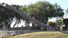 Plusieurs quartiers de Nouméa gardent encore la trace toponymique de cette présence : Receiving (ancien quartier du Vélodrome où l'US Army a installé une station radio)[59], Motor Pool (ainsi nommé car utilisé par les Américains pour entreposer et réparer leurs engins motorisés)[60] sont des noms de quartier hérités d'anciennes zones militaires américaines. Certaines demi-lunes en tôle ondulée datant de cette époque jalonnent encore la ville (l'une d'entre elles abritant le musée de la Seconde guerre mondiale, inauguré à l'occasion du 73e anniversaire du ralliement à la France libre le )[61], tandis que les deux aéroports la desservant (celui de Tontouta pour les vols internationaux, et celui de Magenta pour les liaisons domestiques) ont été essentiellement aménagés durant la guerre. Beaucoup de Néo-calédoniens et de Nouméens ont gardé une certaine nostalgie de cette époque, et encore aujourd'hui, de nombreuses cérémonies commémorent tous les ans cette période autour du mémorial américain situé au Port Moselle. Après-guerre, certaines demandes ont été envoyées à Washington pour faire de la Nouvelle-Calédonie le 51e État d'Amérique[62].