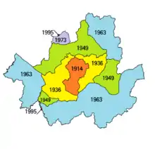En 1963, Séoul s'est considérablement développée grâce à l'annexion de plusieurs villes et villages de plusieurs districts environnants de la province du Gyeonggi, notamment Bucheon, Siheung, Gwangju, Yangju et Gimpo. Cependant, bon nombre des districts nouvellement fusionnés sont restés ruraux jusqu'à ce que la région de Gangnam commence à se développer en un quartier urbain à la fin des années 1970. Simultanément, le canton de Gwacheon (maintenant la ville de Gwacheon) et la partie nord du canton de l'Ouest (maintenant la ville de Gwangmyeong) dans le comté de Siheung, des parties du canton d'Ojeong dans le comté de Bucheon et du canton de Sindo dans le comté de Goyang ont également été annexées aux Districts métropolitains d'urbanisme de Séoul (coréen : 서울특별시 도시계획구역), en prenant ces zones comme districts provisoires pour d'autres municipalités officielles à l'annexion à Séoul dans le futur. En 1973, certains secteurs du canton de Sindo dans le comté de Goyang (maintenant Jingwan-dong dans le quartier de Eunpyeong) ont été officiellement annexés à Séoul. Les parties restantes du canton de Sindo, Goyang et la partie nord du canton de l'Ouest, Siheung (aujourd'hui la ville de Gwangmyeong) devaient être fusionnées avec Séoul, mais le plan de fusion de la ville a finalement échoué, où l'événement emblématique pour cela était la fondation de la ville de Gwangmyeong (hormis sa fusion avec Guro-gu) en 1981, alors que la croissance rapide de la ville de Séoul était une préoccupation majeure des responsables gouvernementaux.