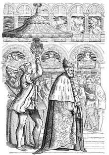 La chronique de Giovanni Diacono, chroniqueur du XIe siècle, raconte qu'au VIIe siècle, les Vénitiens élurent un doge (dux) pour les gouverner. L'historien Donald M. Nicol a montré que ce fait relève du mythe[8]. En fait, le doge n'était pas un Vénitien élu par ses compatriotes mais un provéditeur romain d'Orient, nommé par l'exarque de Ravenne, dont Venise faisait partie.