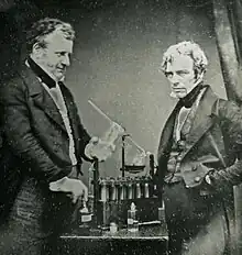 John Frederic Daniell commença des expériences en 1835 dans le but d'améliorer la batterie voltaïque notamment ses problèmes d'être une source instable et faible de courant électrique. Son expérience donna des résultats remarquables. En 1836, il inventa la première pile dans laquelle l'hydrogène était éliminé dans la génération de l'électricité. Daniell résolut le problème de la polarisation. Dans son laboratoire, il réussit à allier un amalgame de zinc de Sturgeon avec du mercure. Sa version fut l'une des premières batteries à deux fluides qui produisait une source de courant électrique fiable pendant une longue période de temps.