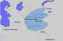 Entre le Ier siècle av. J.-C. et le IIe siècle apr. J.-C., le territoire du royaume gréco-bactrien fut envahi par des peuples nomades venus de Chine, des Yuezhi et des Sakas. Le centre du royaume se déplaça alors vers le sud-est pour devenir, vers 190 av. J.-C., le royaume indo-grec.