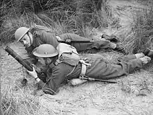 Les Belges servirent également dans différentes unités des forces spéciales britanniques formant une troupe du Commando No 10 inter-alliés fondé en 1942 et qui prit part à la campagne d'Italie et à l'Operation Infatuate (en)[73]. Enfin, le 5e régiment de SAS était exclusivement constitué de soldats belges et fut la première unité à prendre pied sur le territoire belge en [74].