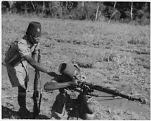 Les soldats congolais de la Force publique ont pris part aux combats contre les Italiens durant la campagne d'Afrique de l'Est et contribuèrent largement à chasser les Italiens d'Abyssinie[78] où ils perdront 500 hommes[79]. 13 000 hommes servirent sous commandement britannique au Nigeria[79]. Au total, la force publique comportait environ 40 000 hommes[80] et connaissait une stricte ségrégation qui empêchait aux Noirs d'accéder au statut d'officier et, tout au long de la guerre, ils restèrent des subalternes aux mains des Blancs[81].
