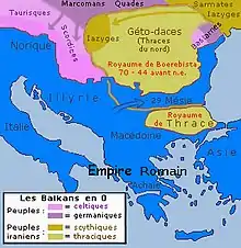 L'expansion romaine, principalement en Germanie et dans les Balkans, vise à instaurer une paix romaine sur toute la vallée du Danube, ce à quoi s'opposent les populations déjà installées. La province romaine de Norique (40-293) correspond en partie à Autriche-Bavière-Slovénie. Les guerres daciques de Domitien puis Trajan mènent à la création de la province romaine de Dacie trajane (107-275, approximativement Roumanie-Moldavie).