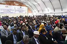 Le , le président Abdullahi Yusuf Ahmed annonce sa démission, déclarant qu'il regrette n'avoir pas pu mettre fin au conflit somalien[29]. Le Parlement, réuni à Djibouti en raison du désordre en Somalie, élit alors le cheikh Sharif Sheikh Ahmed (1964-), ancien dirigeant de l'Union des tribunaux islamiques, à la présidence de la République[30]. Il l'emporte face à Maslah Mohamed Siad Barre (en), fils de l'ancien président Mohamed Siad Barre, et au Premier ministre sortant Nour Hassan Hussein (1938-2020)[31].