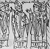 Le rôle des Ostrogoths devient clair lors du premier schisme, lorsque, le 22 novembre 498, deux hommes sont élus pape. Le triomphe ultérieur du pape Symmaque sur son adversaire Laurent est le premier exemple documenté de simonie dans l'histoire de la papauté[14]. Symmaque institue la pratique selon laquelle les papes désignent leurs propres successeurs[15], qui dure jusqu'à ce qu'un choix impopulaire en 530, provoque un schisme dans le peuple romain ; la discorde continue jusqu'à la sélection en 532 de Jean II, le premier pape à assumer un nom de règne à la suite de son élection.