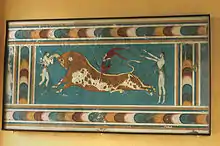 Selon Aristote, c'est Euchiros, parent de Dédale, qui inventa la peinture en Grèce[1]. Pline l'Ancien relate un autre récit selon lequel c'est Callirrhoé, une artiste originaire de Sicyone, qui eut l'idée de tracer au charbon de bois l'ombre de son amant projetée sur un mur, geste considéré par les Grecs comme l'origine de la peinture ; Boutadès, le potier père de Callirhoé, aurait quant à lui appliqué de l'argile sur ce dessin et inventé la sculpture en relief[2]. Au nord de l’Égypte, en Crète, la civilisation minoenne a également développé l’art de la peinture murale, comme dans le palais de Cnossos. Les peintures ressemblent à celles d’Égypte, mais avec un style beaucoup plus libre. Autour 1100 av. J.-C., les tribus du nord de la Grèce conquise par la Grèce et l’art grec ont pris une nouvelle direction.