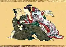 L’ukiyo-e (qui signifie littéralement « images du monde flottant »), peinture populaire par excellence, est en rupture totale avec l'école Kanō. Elle correspond à un profond changement de la société japonaise, qui, avec la paix retrouvée de l'ère Edo, voit le monde des samouraïs passer au second plan, au profit de celui des marchands et d'une bourgeoisie naissante. La forme la plus populaire et la plus connue de l’ukiyo-e est l'estampe japonaise (gravure sur bois), qui permet une diffusion très importante des œuvres des grands peintres que sont par ailleurs Kaigetsudo, Utamaro, Eishi, ou encore Hiroshige.