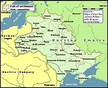 Toutefois, le fait que dans de nombreux domaines, et notamment en Ukraine, les Juifs vivent en majorité dans les villages et les agglomérations rurales (shtetlech) rend la politique de Catherine inapplicable, vu qu’il est interdit aux mechtchantstvo d’habiter en milieu rural[19]. Ainsi, les Juifs étaient implicitement exemptés de l’interdiction incombant à la plupart des membres de leur succession[19]. Périodiquement, cette exception est levée et les Juifs sont interdits de campagne et obligés de se déplacer vers les villes. Ces obligations, rarement concrétisées, sont considérés par les Juifs et par les historiens comme discriminatoires et oppressives[19]. Cependant, à la fin de son règne Catherine II crée, en 1790, une zone de résidence qui s’étend de la mer Baltique à la mer Noire dans la partie occidentale de l’Empire. Elle cantonne les Juifs dans cette limite géographique correspondant aux territoires pris par Catherine à la Pologne-Lituanie, et leur interdit de s’installer dans les régions plus orientales de la Russie[20].