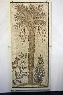 Une synagogue du IIIe ou IVe siècle[42],[37] est découverte à Naro (actuelle Hammam Lif) en 1883[43] par des archéologues français[15]. La mosaïque couvrant le sol de la salle principale, qui comporte une inscription latine mentionnant sancta synagoga naronitana (« sainte synagogue de Naro ») et des motifs pratiqués dans toute l'Afrique romaine, atteste de l'aisance de ses membres israélites et de la qualité de leurs échanges avec les autres populations[44]. Une autre synagogue datant du Ve siècle est découverte à Clipea (actuelle Kélibia)[45].