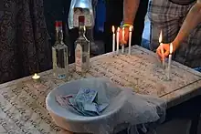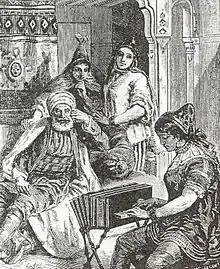 - l'une des légendes fondatrices de la communauté juive de Djerba, retranscrite pour la première fois en 1849[16], raconte que des Cohanim (membres de la classe sacerdotale israélite) se seraient installés dans l'actuelle Tunisie après la destruction du Temple de Salomon par l'empereur Nabuchodonosor II en 586 av. J.-C.[17] ; ils auraient emporté un vestige du Temple détruit, conservé dans la Ghriba de Djerba[18], et en auraient fait un lieu de pèlerinage et de vénération jusqu'à nos jours.