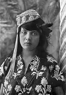 Les Juifs s'insèrent économiquement, culturellement et linguistiquement dans la société, tout en conservant leurs particularités culturelles et religieuses[58]. Si elle est lente, l'arabisation est plus rapide en milieu urbain, à la suite de l'arrivée de Juifs d'Orient dans le sillage des Arabes[57], et dans les classes aisées[61]. On les appelle « peuple de Dieu » pour les uns ou « fils de la mort » (oulad el mout) pour les autres[62].