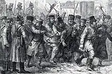 Un tournant majeur dans l’histoire juive d'Ukraine se produit donc en , quand le tzar russe Alexandre II est assassiné par une grenade lancée par un membre d'un petit cercle socialiste. Des rumeurs circulent dans tout l’empire russe affirmant que le nouveau tzar, Alexandre III, a donné au peuple le droit de « battre les Juifs » en guise de représailles[30]. La première vague de massacres désignés comme pogroms commence et dure jusqu’en 1884, les plus nombreux survenant dans la zone de Résidence, correspondant aux actuelles Biélorussie et Ukraine, où les Juifs étaient les plus nombreux et où, cent ans plus tôt, ils affermaient les grands domaines fonciers de l’aristocratie polonaise catholique, domaines où travaillaient les serfs ukrainiens orthodoxes, que les popes excitaient contre les « tueurs du Christ » et dont les cosaques s’auto-proclament « défenseurs et vengeurs » (захисники та месники - zakhisniki ta miesniki). Au cours de ces deux années, on rapporte des actes de violence contre les Juifs dans plus de 200 localités[31].