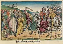 Le VIIe siècle amène de nombreux bouleversements : en 614, Khosro II, empereur perse, prend Jérusalem avec le soutien de rebelles juifs dirigés par Benjamin de Tibériade (en) et Néhémie ben Hushiel (en), et il rétablit un pouvoir juif sur cette ville, ce qui vaudra aux Juifs de l'empire byzantin de nouvelles persécutions[111]. Mais l'empereur byzantin Héraclius rétablit sa situation et peut entrer triomphalement dans Jérusalem le 29 mars 629[112]. Le triomphe est de courte durée car, dès 634, commence la conquête arabe.