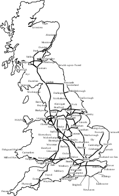 Les premiers chemins de fer publics sont mis en place en tant que simples relations ferroviaires locales et sont alors exploités par de petites compagnies de chemin de fer privées. Avec une rapidité croissante, de plus en plus de lignes sont construites, souvent sans même se soucier de leur éventuel potentiel de trafic. En termes d'exemple, Londres est reliée à Birmingham en 1838[5]. Les années 1840, marquées par la Railway mania, sont de loin la plus importante décennie en matière de croissance ferroviaire en Grande-Bretagne. En 1840, le réseau ferré comprend 3 000 km de lignes peu nombreuses et plutôt dispersées. Mais dix ans plus tard, pratiquement tout un réseau est établi, avec plus de 10 000 km de ligne[5]. La grande majorité des villes et des villages britanniques disposent alors d'une connexion ferroviaire, et parfois même jusqu'à deux ou trois. Au cours des XIXe et XXe siècles, la plupart des toutes premières compagnies ferroviaires indépendantes se regroupent ou sont rachetées par des concurrents, jusqu'à ce qu'une poignée seulement de grandes entreprises subsiste (c'est la Railway mania)[6].