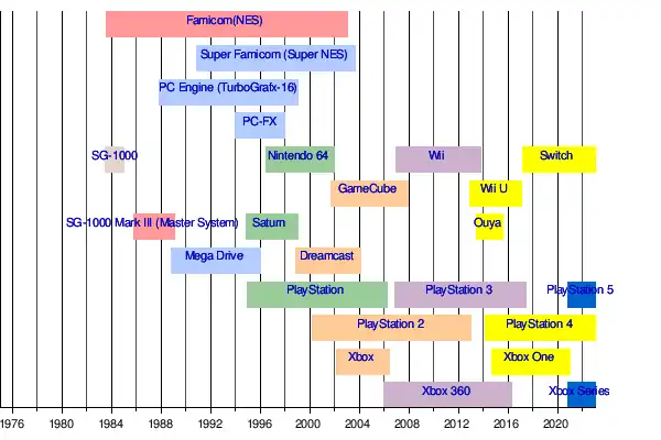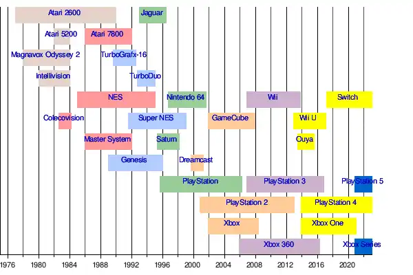 La Nintendo 3DS sortie en (Japon) a lancé la huitième génération de console, suivie par la PlayStation Vita sortie en (Japon). Du côté des consoles de salon, la Wii U est sortie le en Europe. La Xbox One est sortie le en Europe et aux États-Unis. La PlayStation 4 est sortie le aux États-Unis et le en Europe. La Nintendo Switch a pris le relais de la Wii U le .