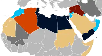 La période de décolonisation du Moyen-Orient s'étend de 1922 (Égypte) à 1971 (Bahreïn, ÉAU et Qatar)[4], marquée par des révoltes civiles et militaires, elle se traduit sur la scène internationale par des mouvements de grande ampleur tels que la naissance de mouvements panarabes (Nasser est l'une de ses figures majeures) et rapprochements politiques (Fédération arabe d'Irak et de Jordanie, République arabe unie et Union des Républiques arabes) le conflit israélo-arabe et les guerres et conséquences économiques internationales sur le cours du pétrole ou encore la crise du canal de Suez impliquant les deux blocs de la Guerre froide. Durant cette période, certains États se rapprochent du camp occidental, d'autres du bloc de l'Est, d'autres choisissent de ne pas s'aligner. Cette différence de positionnement ainsi que la montée des tensions communautaires entre Chiites et Sunnites et l'instabilité des cours du pétrole – devenu un enjeu géostratégique pour les Occidentaux – est à l'origine des trois guerres du Golfe et du dualisme grandissant entre l'Iran et les pays arabes menés par l'Arabie saoudite[5].