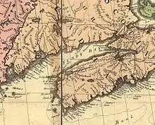 Le Nouveau-Brunswick est formé en 1784 à partir du comté de Sunbury de la Nouvelle-Écosse[50] ainsi qu'une portion du comté de Cumberland[51].