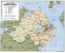 Le traité anglo-irlandais de 1921 négocié entre les représentants britanniques et irlandais et ratifié par quatre parlements[notes 3] établit l'État libre d'Irlande (Irish Free State) d'abord considéré comme un dominion de l'Empire britannique, comme le Canada ou l'Afrique du Sud, mais qui quitte le Commonwealth britannique et devient une république après la Seconde Guerre mondiale sans aucun lien constitutionnel avec le Royaume-Uni. Six comtés du nord, majoritairement protestants, restent attachés au Royaume-Uni (Irlande du Nord).