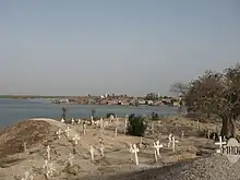 - Sur le littoral et dans les estuaires des fleuves (Sénégal, Saloum, Gambie et Casamance), on observe de fortes concentrations de tumulus et d'amas coquilliers – que l'on désigne parfois sous leur nom danois Køkkenmødding (en anglais, kitchen midden), ce qui signifie « détritus de cuisine ». 217 de ces amas ont été recensés dans le seul delta du Saloum[22], par exemple à Joal-Fadiouth[25], mais on en trouve aussi dans le nord près de Saint-Louis[26], ainsi que dans l’estuaire de la Casamance[27]. Parmi les mollusques identifiés, l'espèce dominante est l'Anadara senilis, également dénommée « arche » ou « pagne »[28].