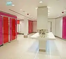 - Les hôtels avec des sanitaires toujours plus agréables et plus spacieux, notamment dans les hôtels de grands luxe du monde entier où le marbre côtoie l'or. « Le décorateur a réussi une parfaite alchimie envoûtante entre le bois, le marbre, l’or et la soie [...] les sols et les murs sont recouverts d’un magnifique marbre de Carrare au veinage rare, les meubles vasques, grandioses, sont entièrement plaqués de feuilles d’or 24 carats. Sur le luxe des salles de bain « le marbre au sol et sur les murs, robinetterie en or, voire dotée de diamants ». Au Georges-V : « ce grand palace est doté de superbes salles de bain avec robinetterie en or [...] les marbres sont donc de rigueur, cela va de soi[N 2]. »