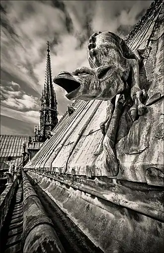 Sur ce même site d'Abousir, des réseaux d'évacuation d'eau pluviale en pierre ont été mis au jour par Ludwig Borchardt. Le réseau découvert comportait des gargouilles d'entrée d'eau et des caniveaux en pierre, mis en place à l'air libre, ou enterrés et recouverts de dalles de pierre[24].