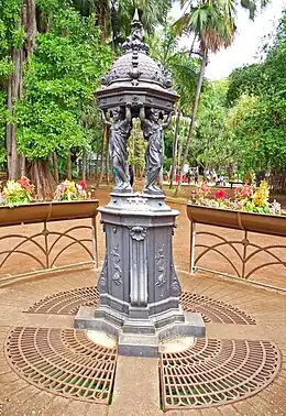 « Chaque bassin se composait d'une auge de pierre [...] avec une bonde conique en plomb avec un œillet en cuivre martelé et un anneau en bronze, lorsque la bonde était tirée, l'eau s'écoulait dans une conduite de cuivre souterraine qui commençait du bassin le plus éloigné [...] et qui sur son parcours prenait l'eau des autres bassins »