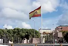 Quant aux symboles formels de la Nation, ils furent hérités de l’étape antérieure, tant le drapeau, créé pour la Marine de Guerre par le roi Charles III en 1785, comme l’hymne — la Marcha Real —, une marche militaire dont l’usage fut instauré par le même monarque en 1768. Si le drapeau connut une large diffusion — le drapeau républicain tricolore qui incorporait le violet des comuneros fut utilisé comme étendard des républicains et non comme une enseigne nationale —[68], il n’en fut pas de même de l’hymne, fondamentalement car il n’avait pas de paroles associées, et qu’il devait de plus rivaliser avec l’Hymne de Riego, qui eut la préférence des libéraux progressistes, des démocrates et républicains[65].