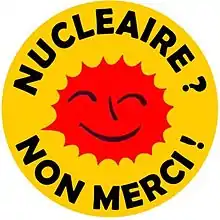 Dans les années 1960, si le nucléaire militaire est dans tous les esprits, le nucléaire civil est vu comme une opportunité de développement économique des campagnes[136] et rares sont ceux qui s'en inquiètent[137],[138]. Au début des années 1970, l'apparition de sensibilités environnementalistes ouvre le débat sur les conséquences de l'utilisation de l'énergie nucléaire. En 1974, le public est largement favorable au nucléaire civil (76 % pour) mais après une première manifestation à Fessenheim en [139], l'opposition croît rapidement parmi la population française. Début 1975, 4 000 scientifiques dénoncent, par une pétition[alpha 10], la minimisation des risques et la précipitation du Plan Messmer puis créent l'association GSIEN pour informer le public[138].