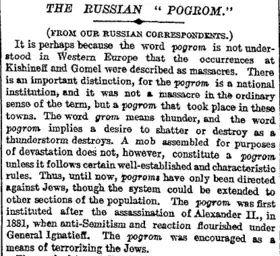 En 1881, des pogroms sanglants se produisent dans l'empire tsariste contre les Juifs. Selon la thèse de Léo Pinsker exprimée dans son ouvrage « Auto-émancipation » publié en 1882, ce serait l'intégration progressive des Juifs dans la vie moderne qui aurait provoqué ces événements : les Juifs n'étaient pas aimés mais ne gênaient guère quand ils vivaient à part. À compter de leur assimilation progressive dans le monde moderne, ils deviennent des concurrents directs et beaucoup plus visibles.