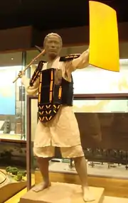 Vers la fin de la période Jomon, les villages et les villes commencent à être entourées de douves et de palissades. Les batailles sont alors menées avec des armes telles que l'épée, la fronde, la lance et l'arc et les flèches.