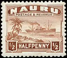 Lorsque Nauru passe sous contrôle du Royaume-Uni en 1916, des timbres de ce pays sont surchargés « NAURU »[1],[5]. Ces timbres surchargés restent en circulation jusqu'à ce qu'une série spécifique est fabriquée en Australie en 1924 avec pour légende « NAURU »[1],[5],[6].