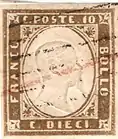 Timbre de 1855 à l'effigie en relief de Victor-Emmanuel II