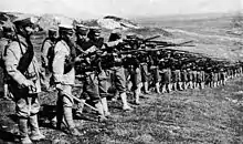 L'intervention de l'Empire japonais aux côtés des Alliés pendant la Première Guerre mondiale reste un sujet encore largement méconnu en Europe. Le Japon prit part à la guerre en occupant les possessions allemandes en Chine et dans le Pacifique[note 2] mais également en envoyant des vaisseaux d'escorte en Méditerranée[57].