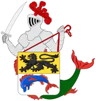 Écartelé en sautoir : en chef d'or au lion de sable armé et lampassé de gueules ; à dextre et à senestre, de sinople au lion d'or couronné du même ; en pointe d'or à la lyre de gueules ; un sautoir dentelé de sable brochant de la partition. |