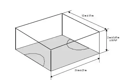 Les buts en acier traité ou inoxydable sont en forme de cornière d'une longueur d'environ 3 mètres. Le volume du but est délimité par une cuvette de 300 cm × 12 cm et une hauteur de 18 cm sur la paroi arrière du but.