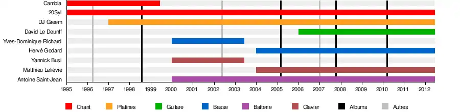 Le groupe se compose actuellement de 20Syl, du DJ Greem, David Le Deunff (guitare et chant), Hervé Godard (guitare basse), Matthieu Lelièvre (piano), Antoine Saint-Jean (batterie et des cuivres parfois). 20Syl et Greem sont également membres du groupe de DJs C2C, ex Coups2Cross, quadruple champion du monde DMC.