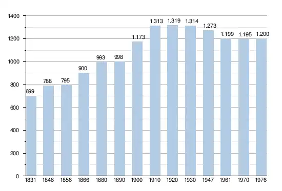 - Sources : INS, Rem. : 1831 jusqu'en 1970 = recensements, 1976 = nombre d'habitants au 31 décembre.