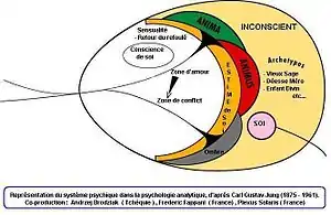 « La complexité de la psychanalyse jungienne tient au fait que toutes les instances psychiques sont en étroites relations les unes avec les autres. Décrire isolément un concept donne de lui une vision forcément partielle car ne tenant compte ni des rapports dynamiques avec les autres instances ni de l'ensemble du système psychique. Tout est lié, tout est en mouvement[4]. »