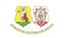 Parti, au premier fascé de huit pièces de gueules et d’argent, au deuxième de gueules à la croix patriarcale pattée d’argent, issante d’une couronne d’or, plantée au sommet d’un mont de trois coupeaux de sinople. Le blason est timbré de la couronne de saint Étienne.