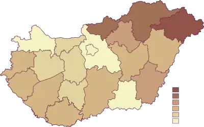 La superficie totale est de 19 949 km2, ce qui représente 21,4 % de la surface terrestre du territoire de la Hongrie[15].