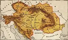 La Hongrie partage des frontières avec sept pays (dont cinq sont, comme elle, membres de l'Union européenne), 2 189 km au total[2]. Elles sont toutes tracées pour délimiter la deuxième république de Hongrie, fin 1918 et début 1919, à la suite de la dislocation de l'Autriche-Hongrie et de la première république hongroise. À deux exceptions près (environs de Sopron en 1922, et de Bratislava en 1946), la délimitation est effectuée par la commission internationale Lord où des géographes comme Robert Seton-Watson (en), Emmanuel de Martonne ou encore l'historien Ernest Denis jouent un rôle important. Ces frontières sont officialisées par les traités de Trianon (1920) et de Paris (1947)[11]. Pour l'opinion hongroise, le traité de Trianon est une tragédie nationale (que le gouvernement envisage de commémorer solennellement en 2020[12]), car, par rapport à son territoire antérieur, le pays a perdu 71 % de sa superficie et 32 % des magyarophones, devenus citoyens autrichiens (dans le Burgenland), tchécoslovaques (aujourd'hui slovaques ou ukrainiens), roumains ou yougoslaves (aujourd'hui slovènes, croates ou serbes).
