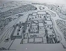 Au sommet de la colline se trouve un grand complexe de bâtiments comprenant un mikvé, un bâtiment à usage public (une synagogue ?) et une grotte refuge dont une des entrées se situe à l'angle du grand bâtiment public et du quartier d'habitation. En plus du pressoir qui témoigne de la production de vin, d'autres vestiges indiquent une production d'huile d'olive et de figues. Des fuseaux indiquent une activité de filage textile.