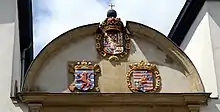 L'entrée principale du Musée national d'histoire naturelle, au no 25 de la rue Münster comprend un portail monumental entre deux colonnes corinthiennes. Sur le pignon du portail, il y a trois armoiries. Celles du haut correspondent au blason du roi d'Espagne Charles II, qui règne sur le duché de Luxembourg en 1674 lors de la reconstruction de l'hospice. Sur la gauche, les armoiries du duché avec le lion rouge emblématique et sur la droite, les armoiries de Philippe de Croy, gouverneur du Luxembourg[2].