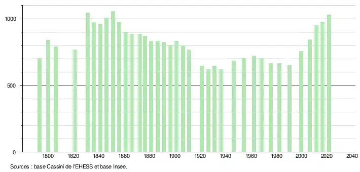 Au XXIe siècle, les recensements réels des communes de moins de 10 000 habitants ont lieu tous les cinq ans. Les autres chiffres sont des estimations[réf. nécessaire].