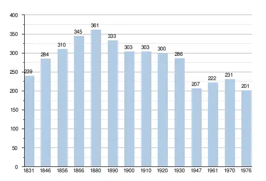 - Source: DGS, 1831 à 1970=recensements population, 1976= habitants au 31 décembre