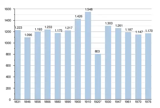 - 1920* : Décroissance importante de la population due aux dégâts causés par la Première Guerre mondiale