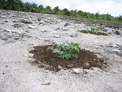 La barrière de corail est émergée sur les côtes septentrionales et orientales, ce qui en fait un atoll surélevé[1].